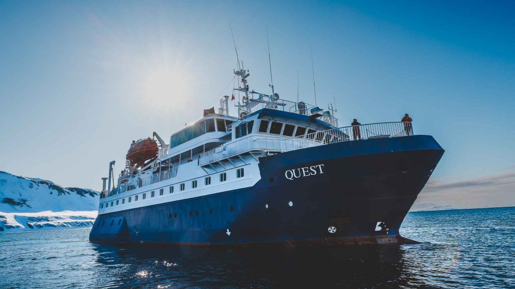 Die QUEST wurde 1992 in Dänemark als Fähre unter dem Namen SAQQIT ITTUK für den Einsatz an der grönländischen Westküste gebaut. 2004/2005 wurde sie komplett zu einem komfortablen Expeditionsschiff umgebaut und 2018 einer Renovierung der Passagierbereiche unterzogen. Heute bietet das Schiff Platz für 53 Passagiere.